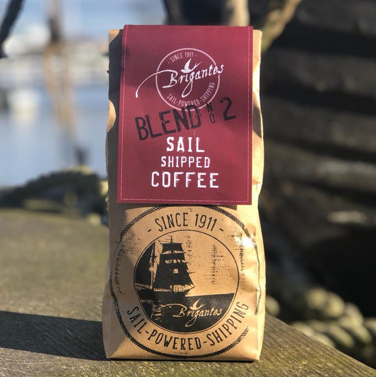 Brigantes Coffee Classico Blend Nr. 2 ist ein köstlicher Bio-Kaffee, der zu 50 % aus kolumbianischen Arabica-Bohnen und zu 50 % aus mexikanischen Robusta-Bohnen besteht. Dieser Kaffee wird per Segelfrachtschiff transportiert.