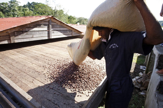 Der Segelfrachter Tres Hombres transportiert die Kakaobohnen für diese Schokolade mit der reinen Kraft des Windes in die Niederlande. Diese nachhaltige Segelreise beginnt in der Karibik und führt die Fracht bis nach Amsterdam Nord, wo sie ihr Ziel erreicht.